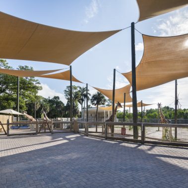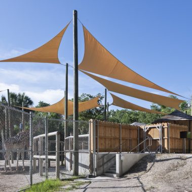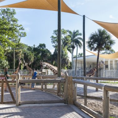 The Naples Zoo giraffe exhibit and feeding experience was fully upgraded. The new design features an elevated viewing and feeding platform to allow more interaction between guests and the giraffes. The renovated space also includes a new restroom and a small cafe with seating overlooking Lake Victoria and the Primate Expedition islands, one of the most stunning views in the zoo.